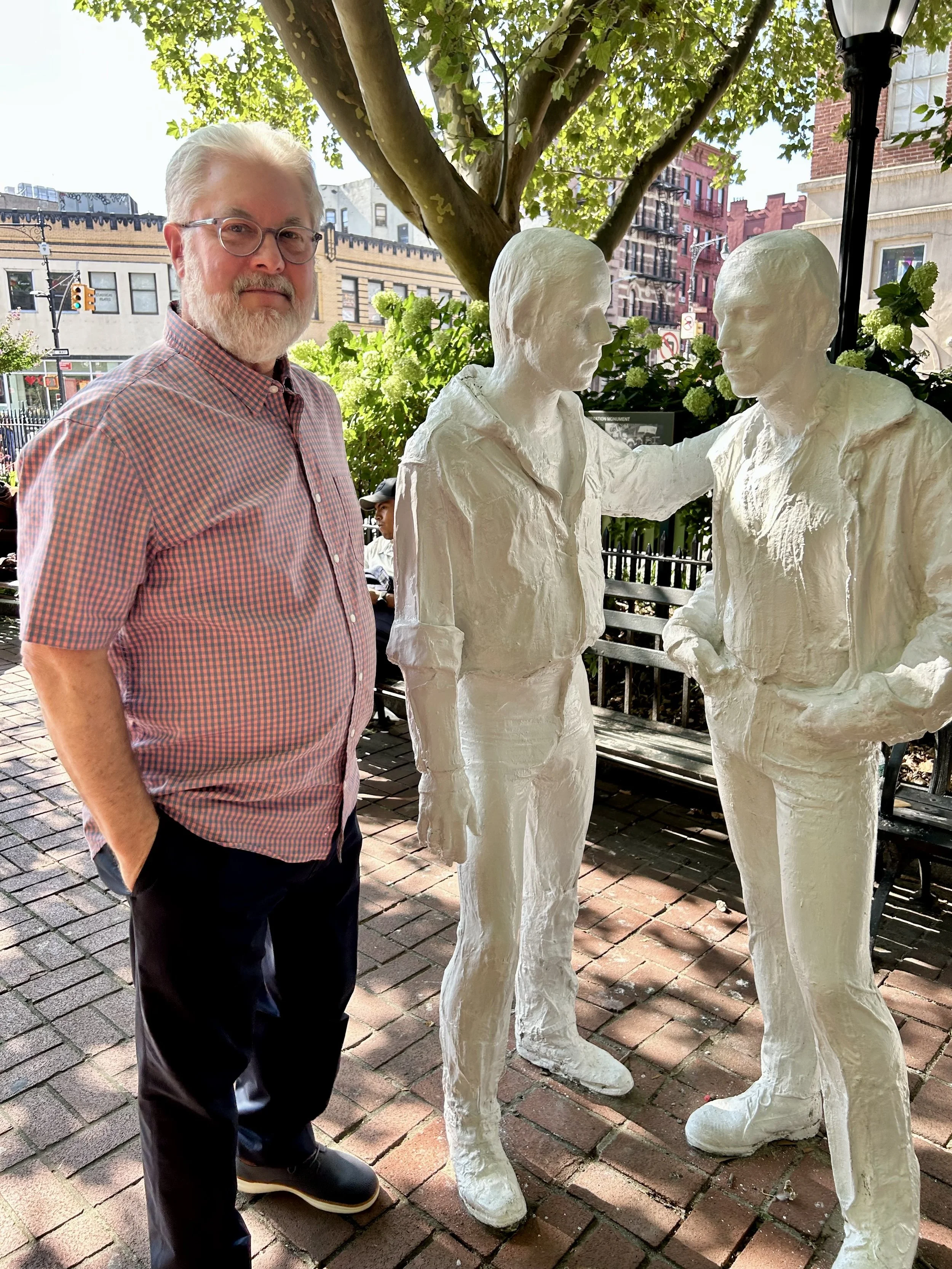 And here he was, captured by the sculptor George Segal in the Gay Liberation Monument in Greenwich Village. David was a studio assistant to Segal and posed for one of the figures in the piece, forever placing him proudly in Christopher Park, just across the street from the site of the Stonewall riots. After David passed, whenever members of the SouthCoast art community visited the city, they often posted pictures of themselves with the statue on social media. Circumstances prevented me from making the trip, so this serendipitous encounter was an unexpected pleasure. I was able to introduce him to my new love and we spent a few moments sitting quietly on a nearby bench, sipping our iced coffee and talking about his remarkable life.