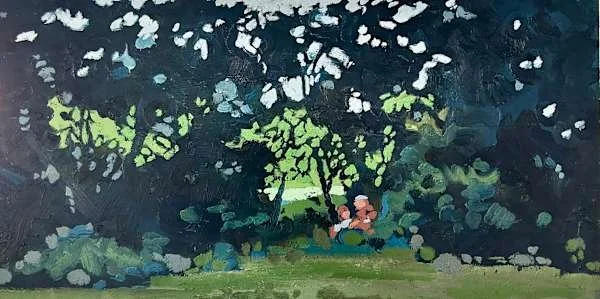 Shadows at Ernie’s, oil on canvas, 2025